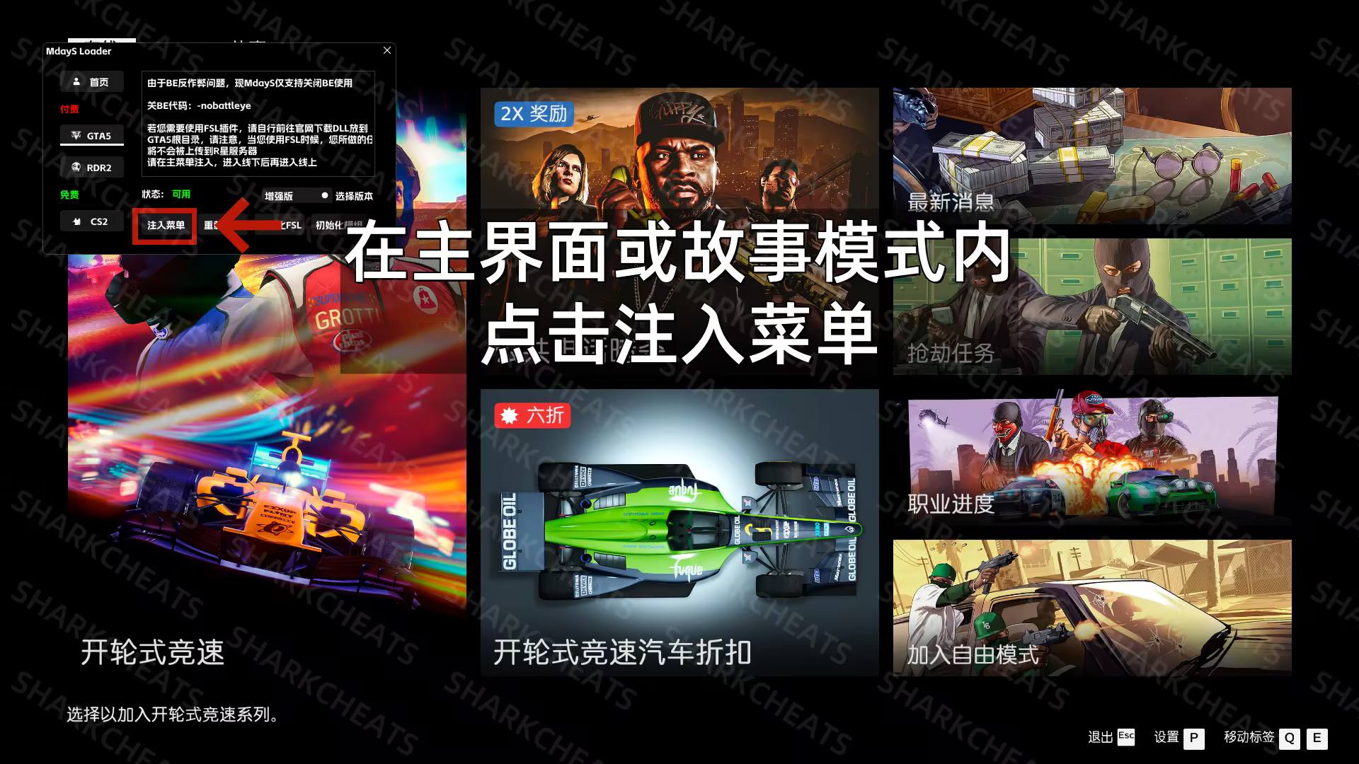 开启GTAV游戏,在游戏进程出现的一瞬间 点击注入
