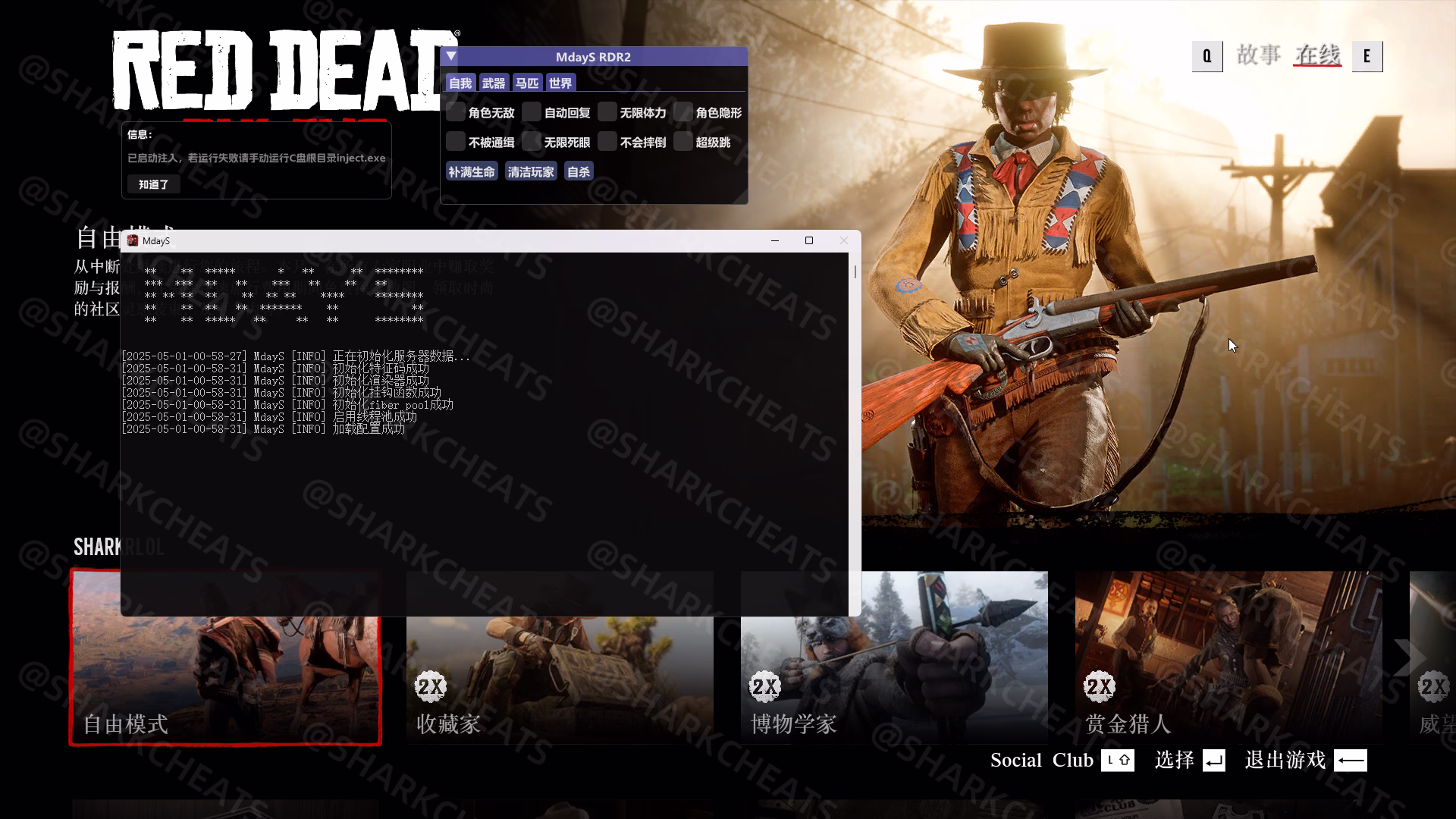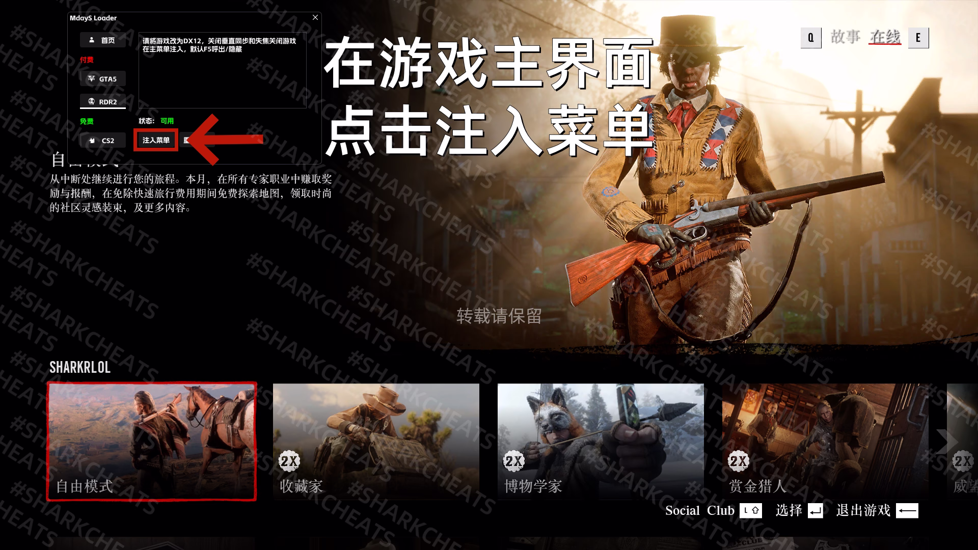 - 打开游戏至主界面,点击菜单上的“注入菜单”,等待程序框加载