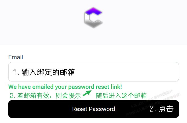 1. 输入旧网站账户所绑定的邮箱,然后点击 Reset Password
