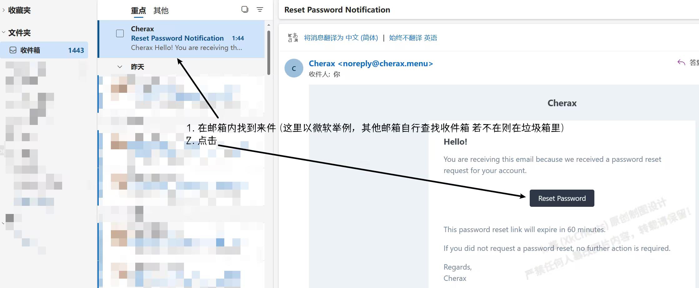 We have emailed your password reset link! 后,进入你的邮箱点击里面的链接。