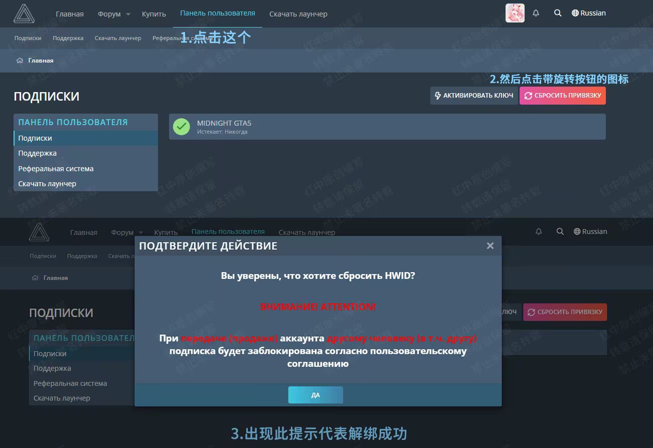 🎮 GTA5-侠盗猎车手V教程Midnight-午夜菜单午夜解绑教程午夜解绑教程 点击进入解绑地址 如图操作: 解绑完成后按照正常流程安装注入即可 危险午夜目前每天(24小时内)最多解绑5次,一个月内最多解绑100次,超过此限制会被判定为共享账号,导致封号,无法解封。