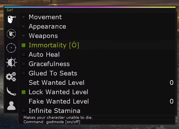 - 作弊码:拥有全局作弊码系统,像圣安地列斯&罪恶都市一样,可以使用"作弊码",开启菜单中的功能