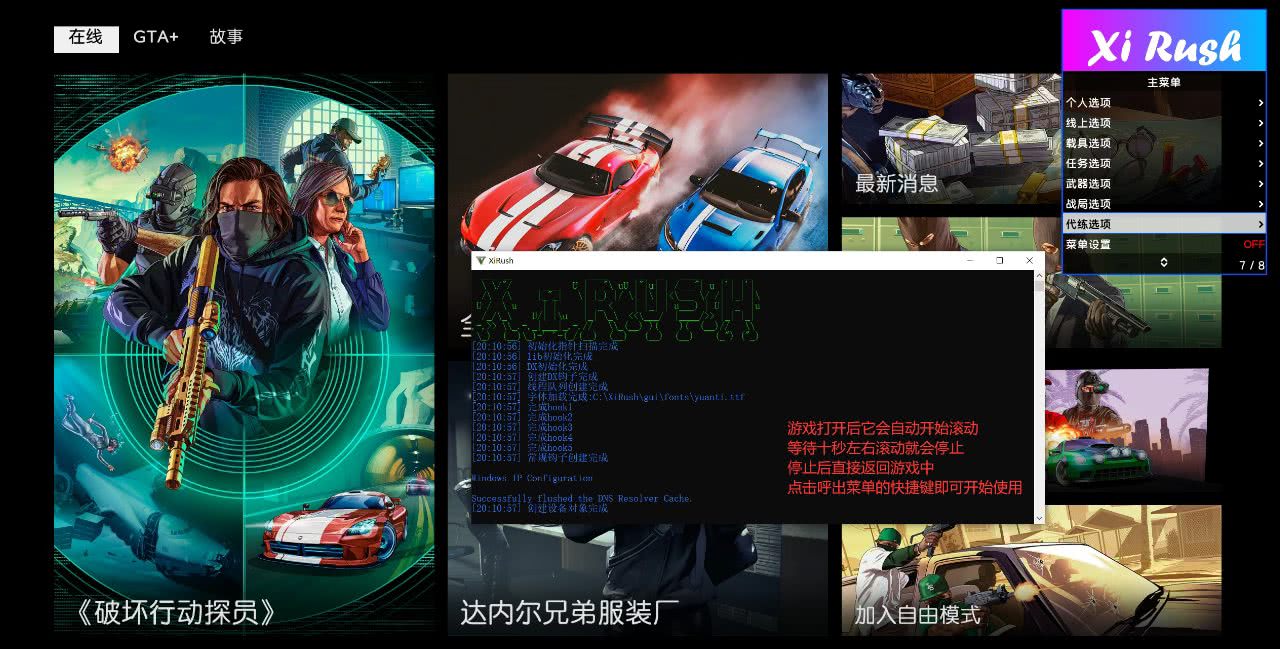 到游戏主菜单(选择故事与线上的界面,不要进故事模式或者线上模式注入)以后,点无FSL关BE注入即可