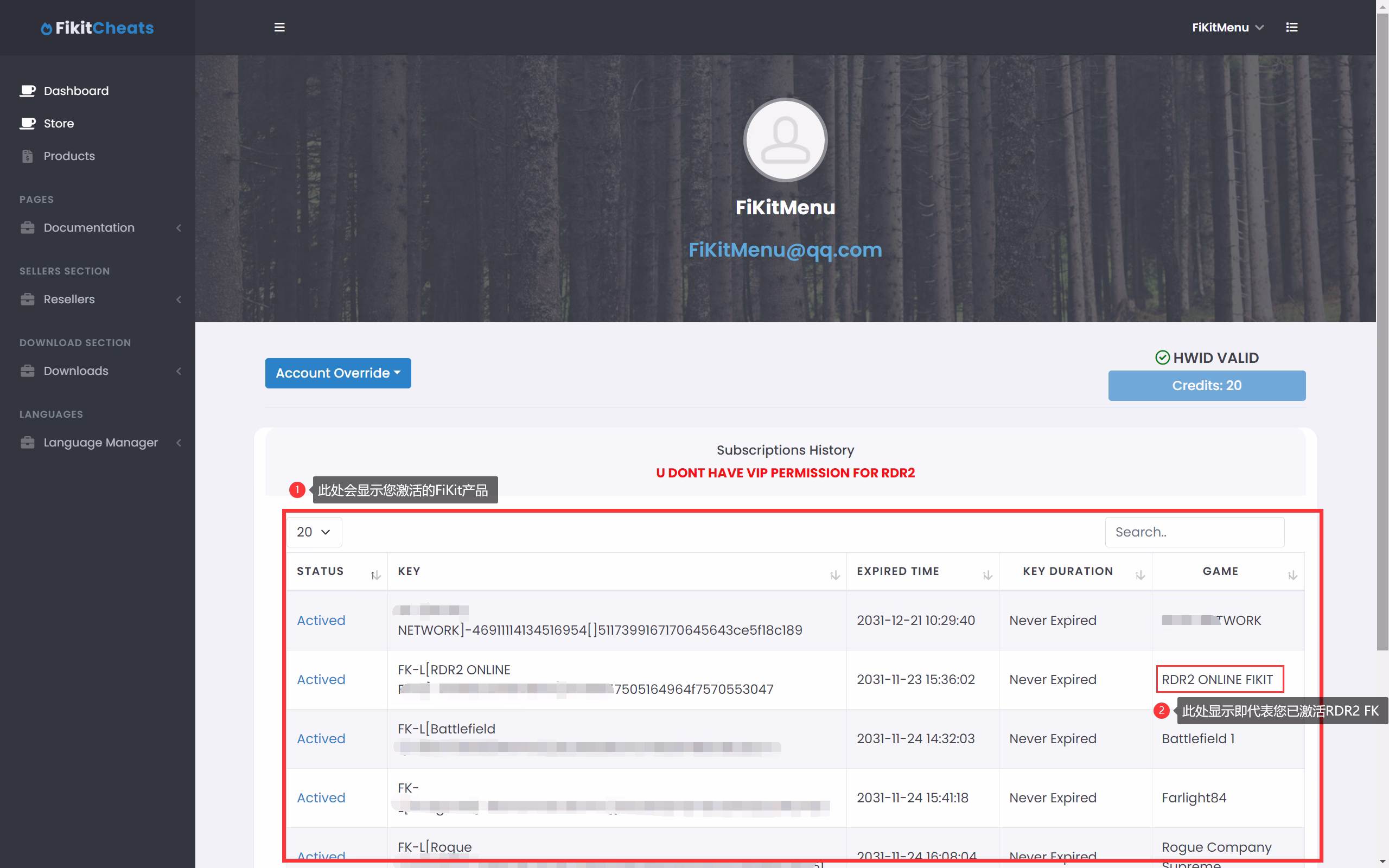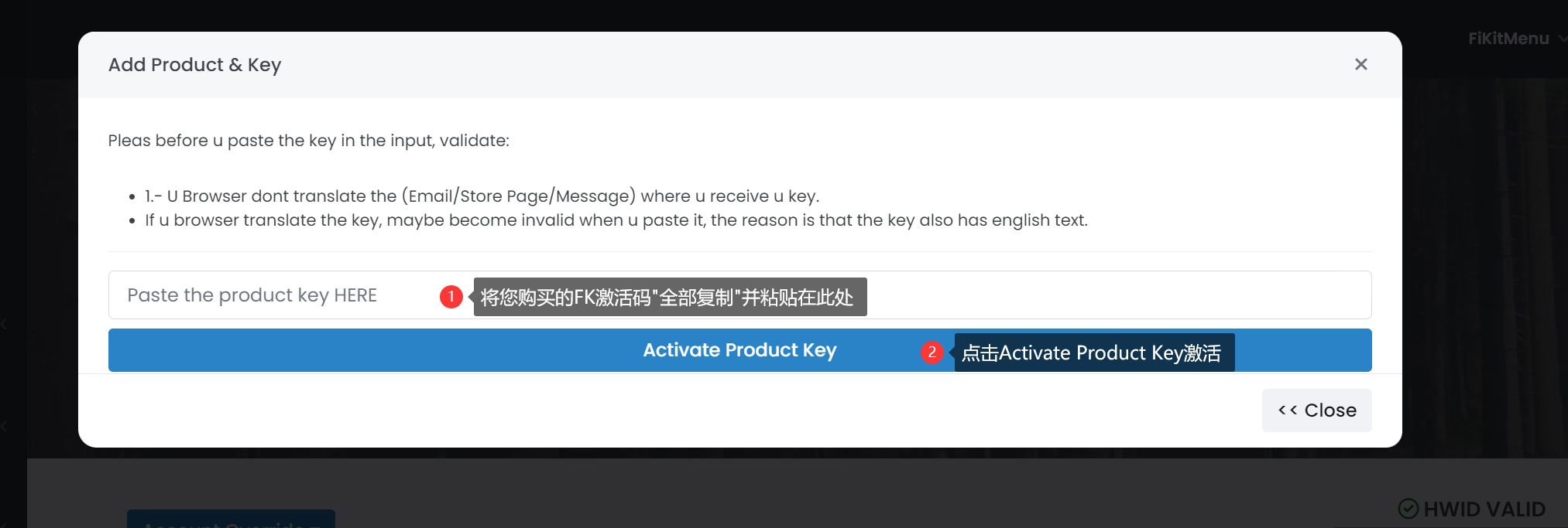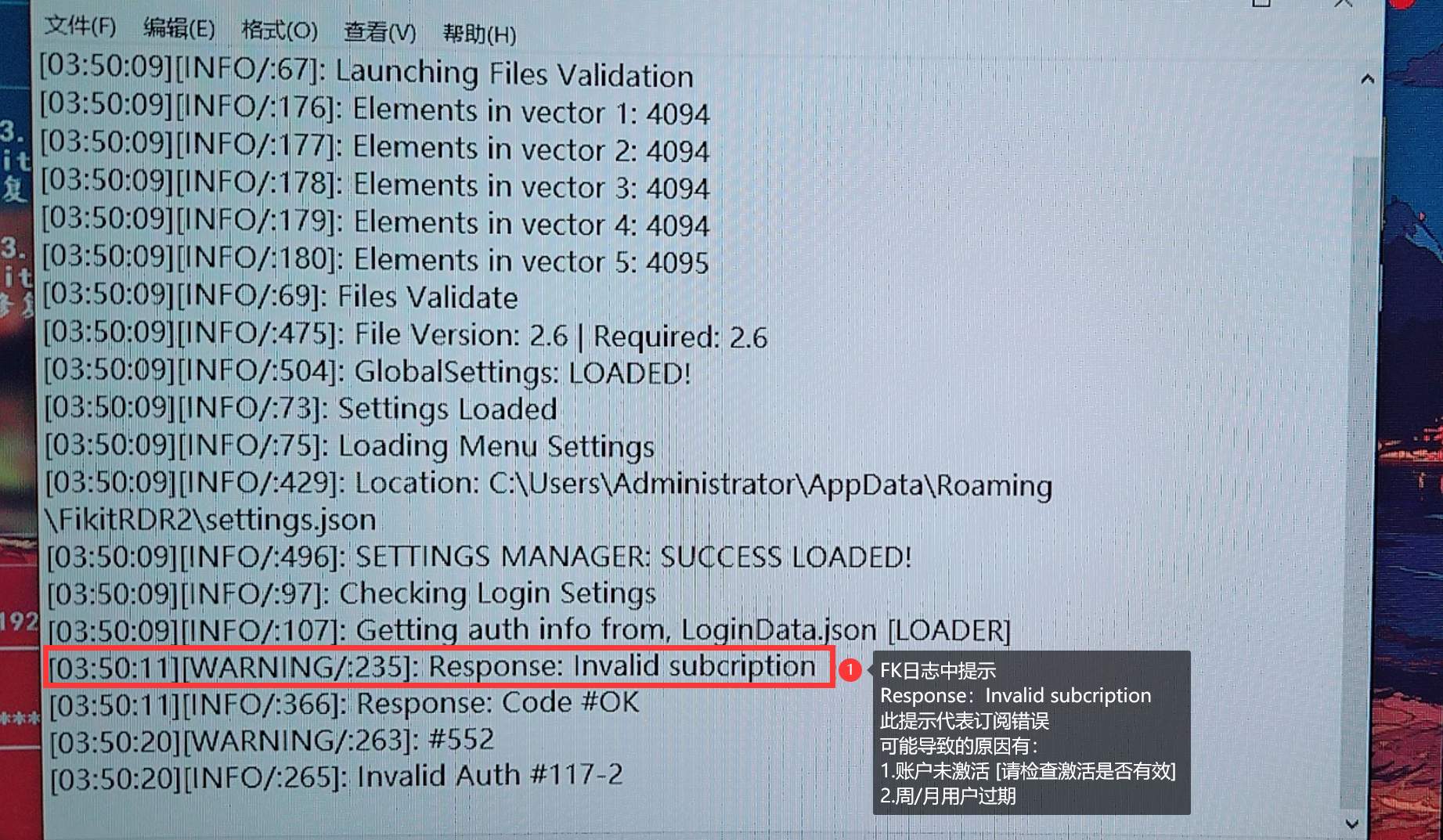 2.未在官网中使用激活码激活FK账户会导致此提示