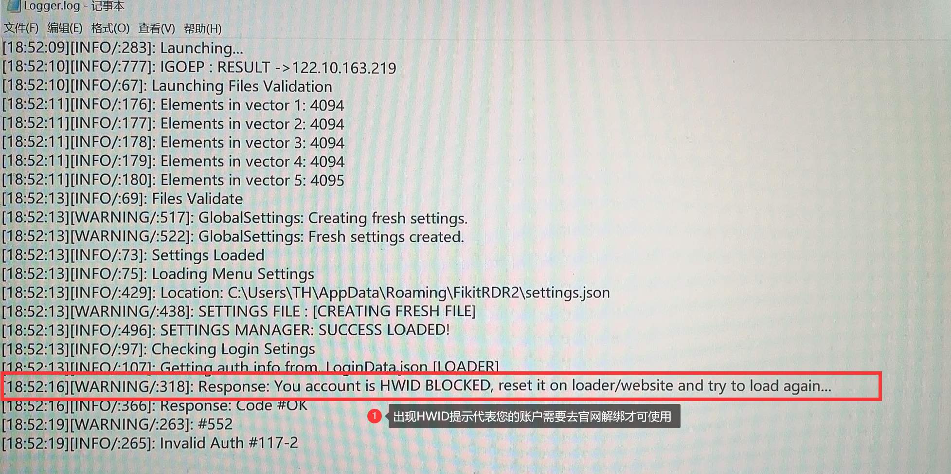 Response:Your acount is HWID BLOCKED [需要重置HWID解除电脑绑定]