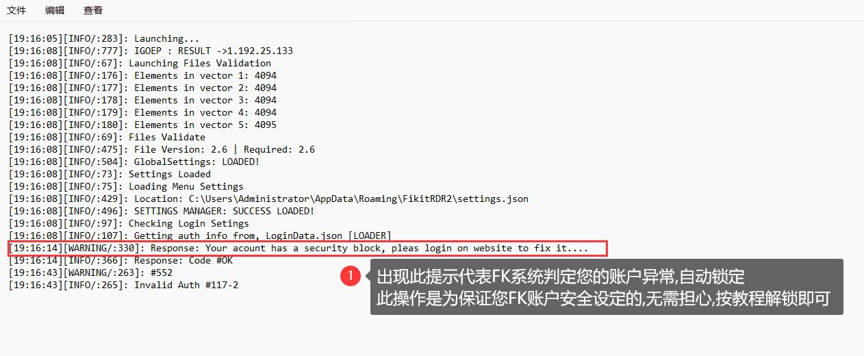 日志中如果出现下图提示:即代表FK系统判定您的账户可能有风险,暂时锁定账户