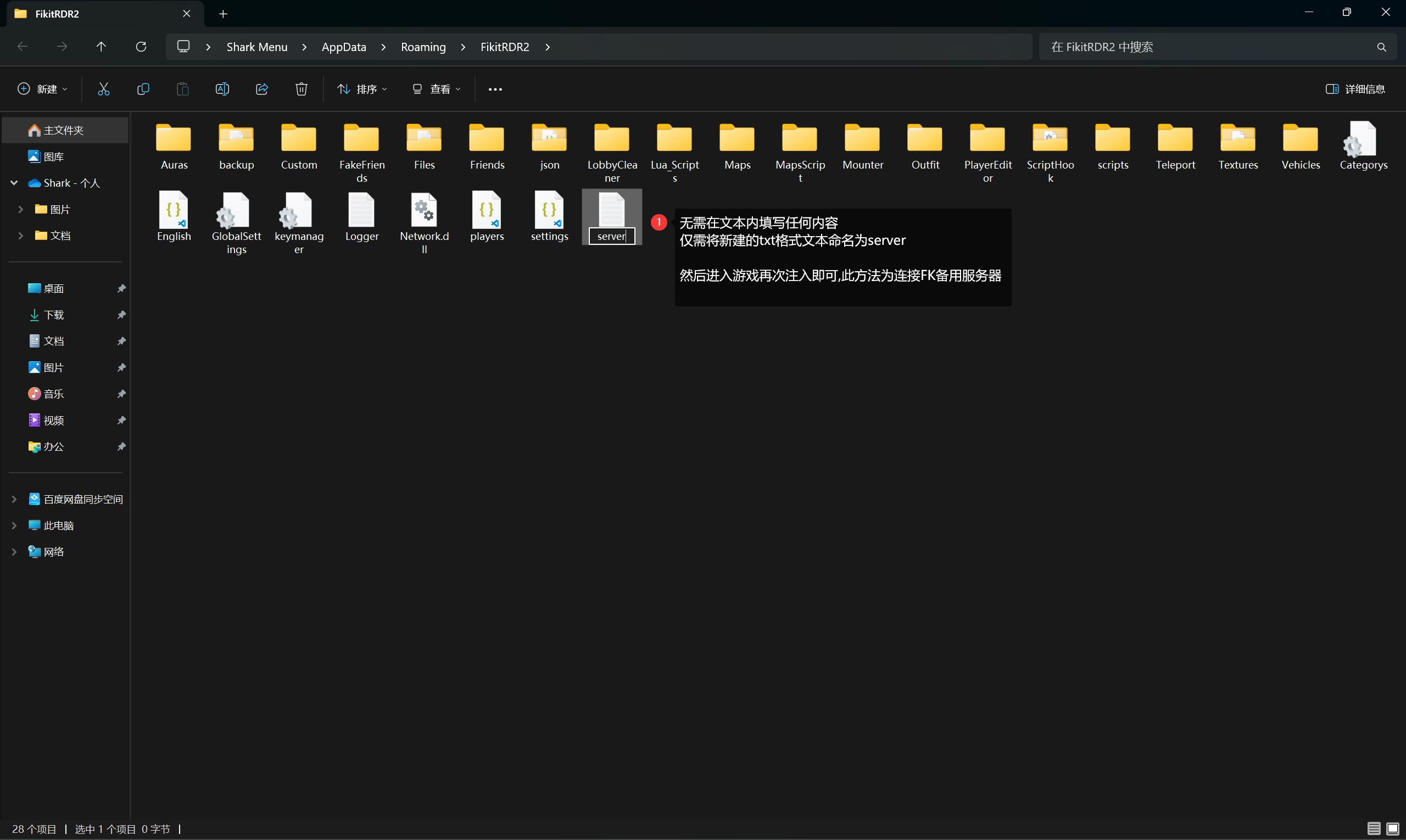 仅需将新建的文本命名为 server
