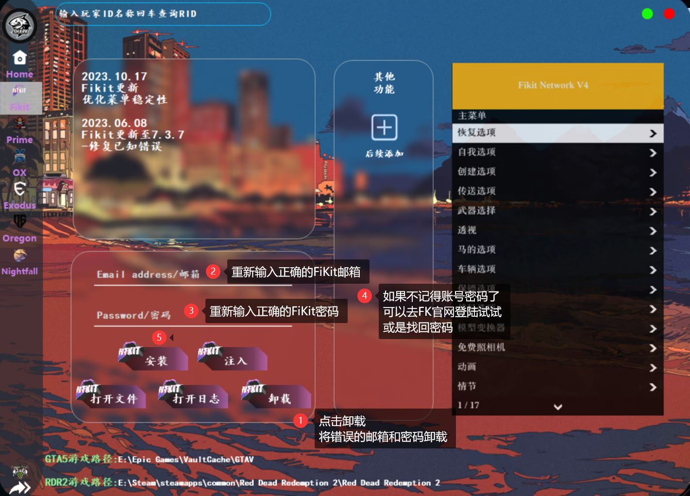 安装器用户可通过安装器 卸载错误账号密码的RDR2 FK文件