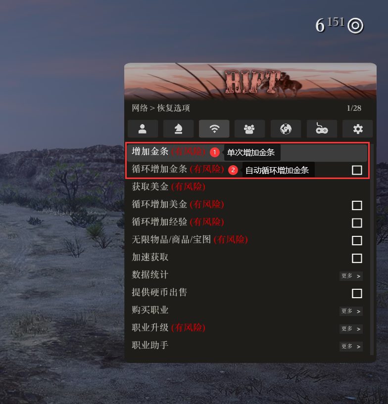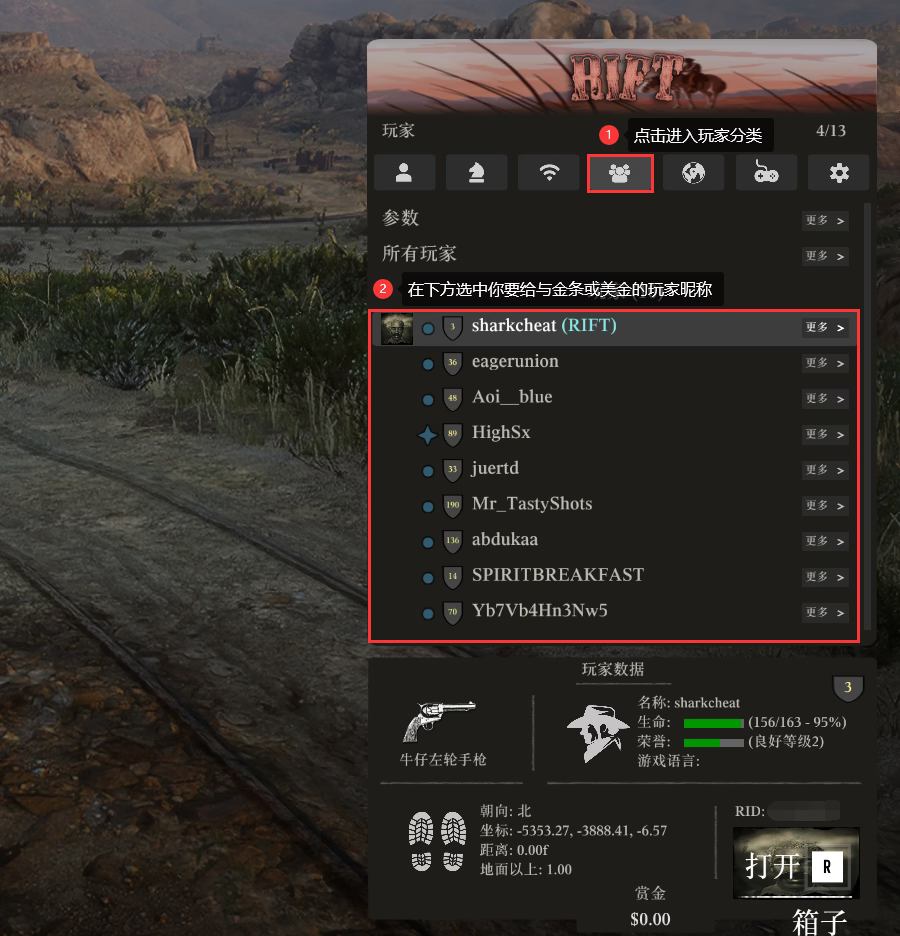 🤠 RDR2-荒野大镖客II教程Rift 裂痕Rift 刷金条教程本页总览Rift 刷金条教程自动刷金条教程 信息此方法仅Rift用户可自用,无法为朋友提供金条或美金。如果想要为朋友或其他玩家刷金条美金,下拉查看手动刷金条教程。 手动刷金条教程 success此方法可为朋友或其他玩家提供金条。 依次进入:友好 → 选中要刷的玩家ID → 生成金条宝箱